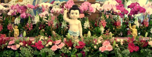 After an early meal we raced down to London this morning to attend the Annual Buddha’s Birthday Celebration in London’s Leicester Square. Like last year we were delayed by the crowds converging on Wembley for the Cup Final and so we arrived too late for the procession through China Town. Actually we didn’t mind that as it was raining and we got wet enough nipping through the pedestrianised bit from where we had jumped out of the car in St Martin’s Lane. I had been asked to give a short address and I focussed mostly on the hope that the Buddha’s message brings us for a better and happier life. This, of course, is a big weekend for Buddhists throughout the world. Theravadans like us celebrate the Birth, Enlightenment and Passing of the Buddha, while for some other schools it’s the Enlightenment only and for our Chinese friends of the London Fo Guang Temple it’s the Birth that they celebrate at this time. And their way of doing it is to ceremonially bathe the images of the child who later grew up to leave his princely estate and eventually win full Enlightenment to become the Buddha. We were each of us invited to go forward and bathe an image. The images of the child prince show him pointing to the earth and to the heavens as he declared that this would be his last birth.