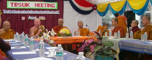 Yesterday I rose from my sick bed – it’s only been flu – and paid my first visit to the Thai temple at Kings Bromley where I chaired a meeting of the Theravada Buddhist Sangha in the UK (TBSUK). We had a very good turnout with Bangladeshi, Burmese, English, Indian, Sri Lankan, Thai and Nepalese monks and nuns attending from a number of temples dotted around the UK. And we were very well looked after by Phra Kru Panyasudhammawithet and the monks and novices of the Buddhavihara Temple at Kings Bromley.