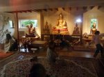 To begin with the weather didn’t make a very good start to the day but we were better prepared than usual with a second marquee obtained from eBay and a rather good heater so when our guests arrived they had a modicum of comfort in which to enjoy a welcome cup of tea or coffee. The proceedings kicked off in our usual style with respects being offered to the Triple Gem, then those who wanted to took the Refuges and Precepts and the almsround followed. By then the rain had stopped. After the food we all reassembled in the Shrine Room for the offering of the cloth, the proceeds of the money tree and the array of supplies surrounding it. Then as a response to this impressive show of kindness and generosity I gave a talk in which I touched on the hundreth anniversary that’s just passed of the return to Burma of an English monk who led the first ever Buddhist mission to this country in 1908. That led me on to speak of the importance of establishing a home-grown branch of the bhikkhu sangha and the debt that we all owe to the monks from Thailand, Burma and Sri Lanka who aided by their supporters have done so much to help us establish Buddhism on this island. When the money was counted it didn’t quite reach £5,000 so the lady with the mike made a determined plea for a little more and in minutes it was over £5,000, which then in another burst of enthusiasm led to a rounding up to what was considered an acceptable figure of £5,099.99. That was when we noticed that the clouds had dispersed and the sun was shining.