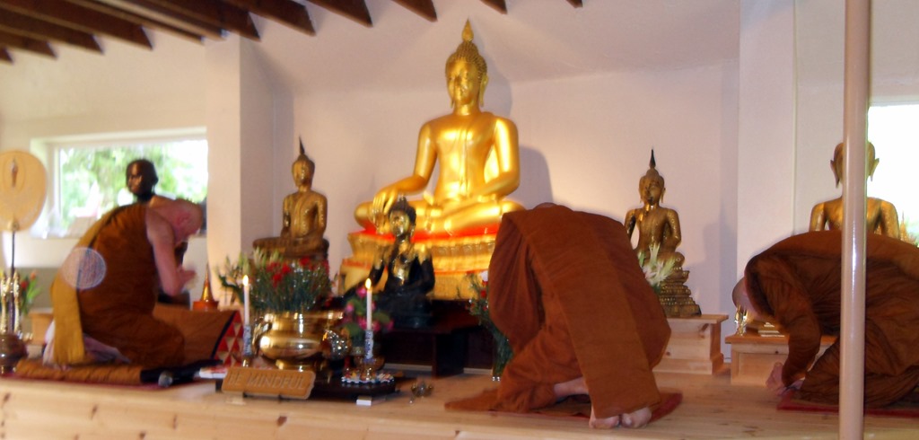 Usually in May falls the full moon of the ancient lunar month of Vesakha when we remember the Birth, Enlightenment and Final Passing of the Buddha. The Pali scriptures record that each of these events occurred on a Vesakha Full Moon with the Enlightenment, according to traditional dating having taken place 2,551 years ago when he was thirty-five. This year the Vesakha Full Moon was on May 24th and on several days before and after I was involved with Vesak celebrations in the prisons, at Chithurst and at The Forest Hermitage. I hadn’t been to Chithurst since June 1999 but this year I was invited to go for their Vesakha Puja day and give the Dhamma Desana, which I did. That was on May 19th and the week after it was our turn and a very good day we had too with an impressive turnout of students from Warwick Uni, friends old and new and particularly, as every Vesak, our old friends who for years have run the Liverpool Buddhist Society. More pictures are here.