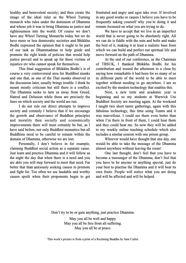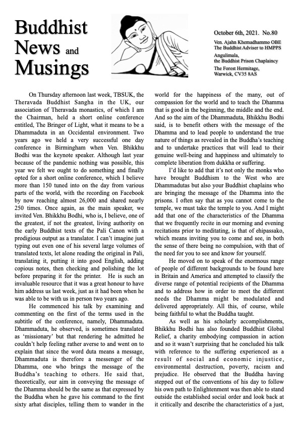 October 6th, 2021 These newsletters have been written principally for Buddhist men and women in prison but I offer them here in case they might be of interest to others. Share this: Share on Facebook (Opens in new window) Facebook Share on X (Opens in new window) X Like Loading... Related