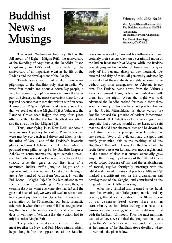 Māgha Pūjā, February 16th, 2022.