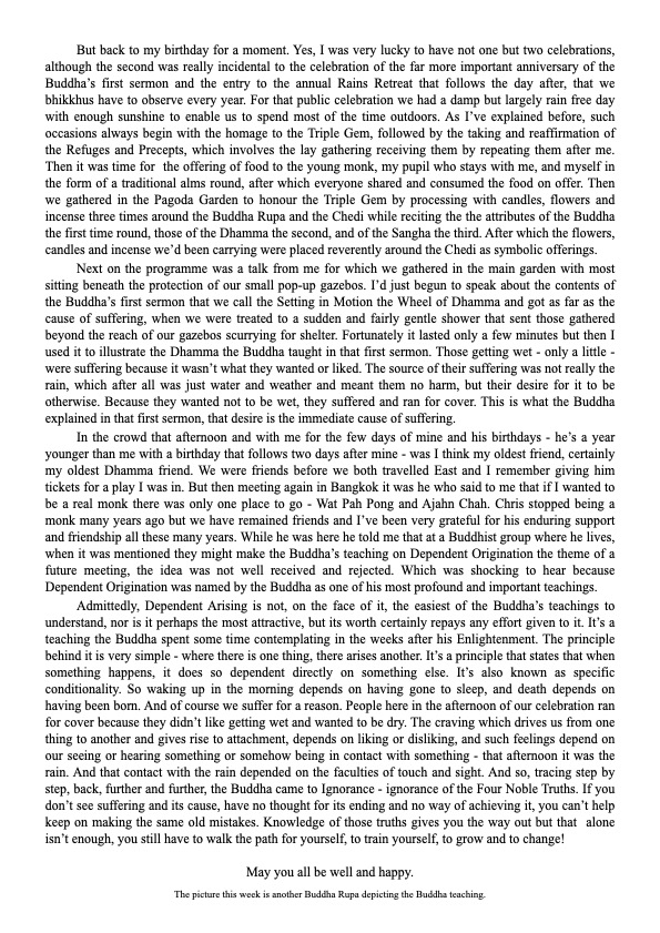 On Sunday, July 20th at The Forest Hermitage – Wat Pah Santidhamma we will be celebrating Asalha Puja – the anniversary of the Buddha setting in motion the Wheel of Dhamma with his first sermon, and the Entry to the annual Vassa. These two events are properly today and tomorrow but we will be celebrating them on Sunday, July 20th.